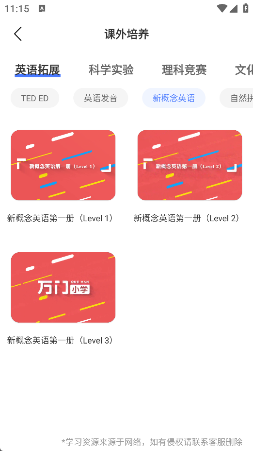 聚焦英语长期能力建设,《新概念英语》全四册课程结构化上线,配套精讲视频、随堂测试与发音训练,助力听说读写均衡发展,真正实现“学一课、会一招、用得上”。