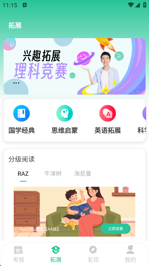 涵盖国学经典诵读、逻辑思维启蒙、RAZ分级阅读体系等优质资源,支持按能力水平智能匹配内容,帮助学生稳步提升理解力、表达力与自主学习力。