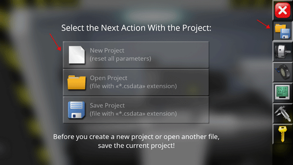 5、右上方的文件图标代表项目管理功能,支持新建、打开和保存三种操作。点击“新建项目”即可立即开始您的数控创作之旅。