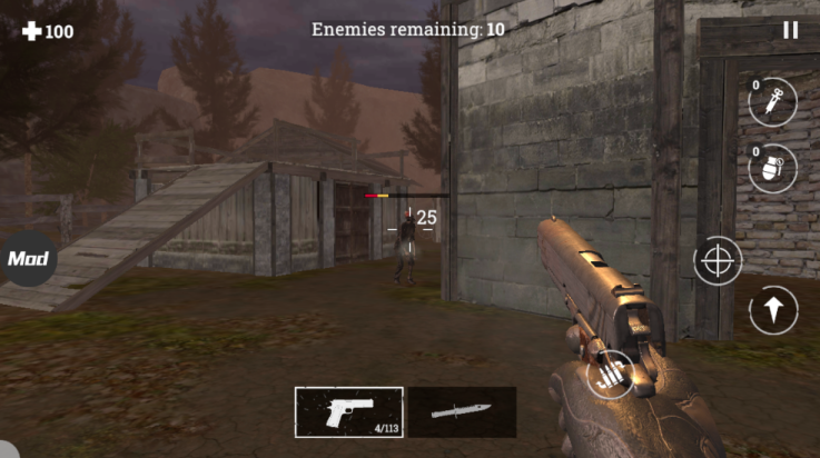 3、进入游戏之后,会有僵尸围攻我们,我们需要使用受伤的枪械击杀敌人;