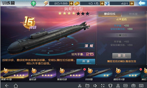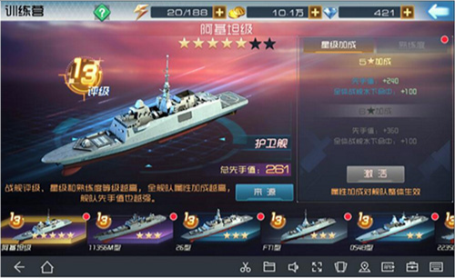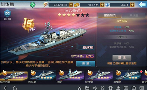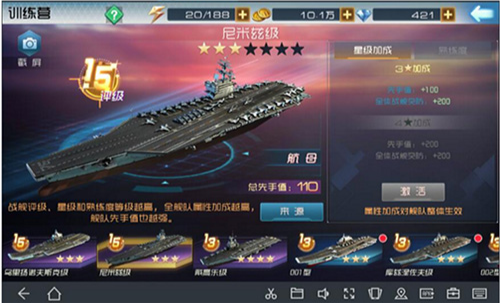 训练营是提升舰队整体战力的关键中枢,涵盖航母、驱逐舰、巡洋舰、潜艇、护卫舰五大模块。每艘舰船通过升星解锁专属加成——例如伊丽莎白女王号5星激活“全体突防+12%”,6星预设“先手值+8”,精准匹配你的战术需求;而现代改升星则主加“全体防护”,是前排坦系核心养成首选。星级加成实时可视化,搭配属性预览功能,让你每一分资源投入都目标明确、效果可期。