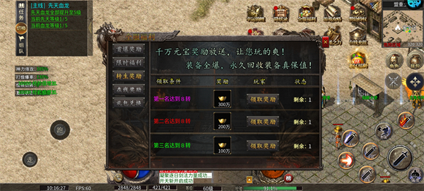 ★ 无需充值,免费领取专属极品称号;在线挂机即可持续领取元宝、强化材料等实用资源