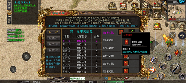 开服后多时段限时开启,达标玩家自动获得随机幸运点数,按实时排名发放元宝、神装碎片、稀有坐骑等阶梯奖励,拼手气更拼活跃