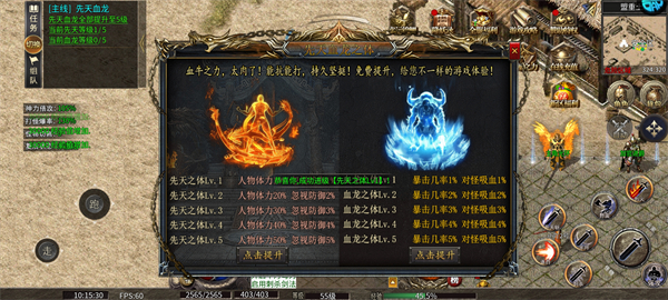 无需氪金,通过日常积累即可免费激活并强化“先天之体”与“血龙之体”,全面提升体力、暴击率、吸血效果等核心战斗属性